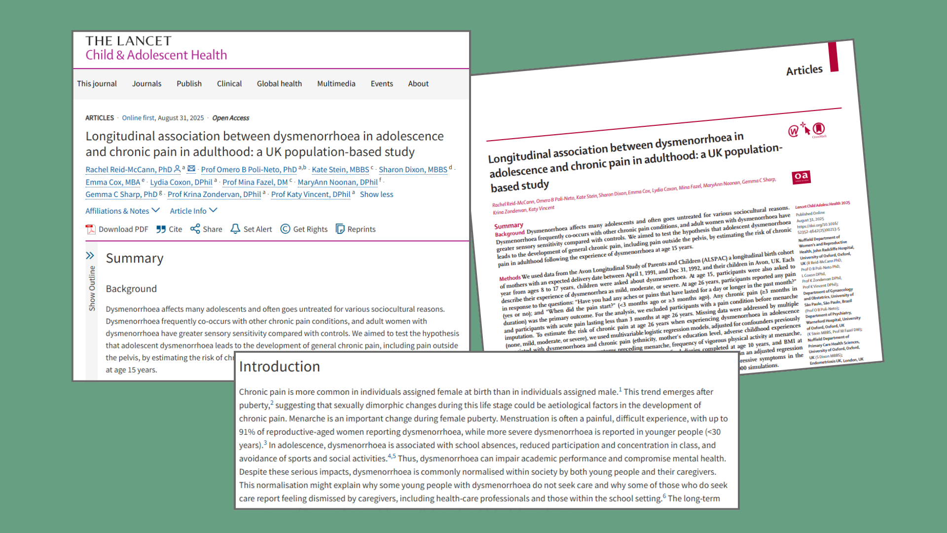 Sadly, my story isn’t unusual. Research shows that severe period pain (dysmenorrhoea) in adolescence is more than just a “bad period.” A UK population study published in The Lancet found that adolescents who experience moderate to severe dysmenorrhoea at age 15 have a significantly increased risk of developing chronic pain in adulthood. This isn’t just about discomfort once a month, it’s about a lifelong health burden that can affect education, work, relationships, and mental health.